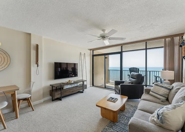 The spacious 2-bedroom Stunning Ocean Views From The 10Th Floor Condo Myrtle Beach offers views of the sea and a location within 25 minutes' walk of Gator Hole Golf Course. At this beachfront apartment guests can lounge by a heated pool or visit the McLean Park, which is located just 0.7 km away.